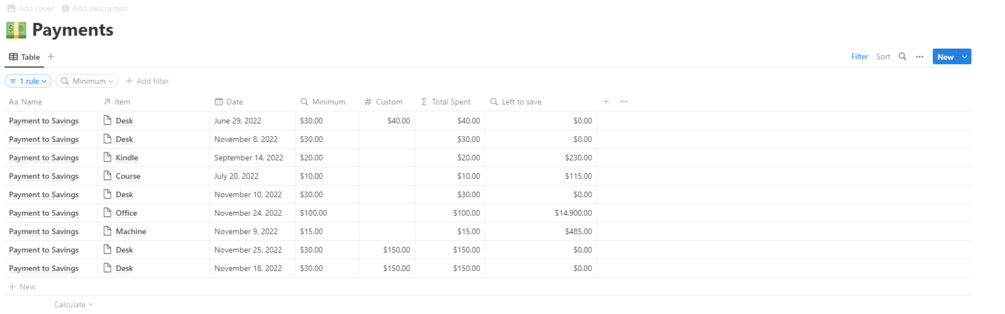 Get your Savings in order with this Ultimate Savings Tracker for Notion! Know exactly where and what for is your money being saved for, how much does it take to complete your objetives, you can simulate, personalize, complement,... . Track your savings progress and start saving for your next big investment/item/objective!